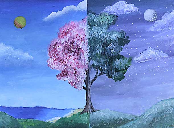 I wanted to try a different style to my usual paintings, portraying the differences between Winter and Spring.