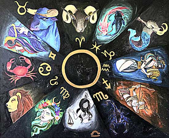 I am fascinated with astrology, Greek mythology and the Zodiacs which inspired me to paint this piece.