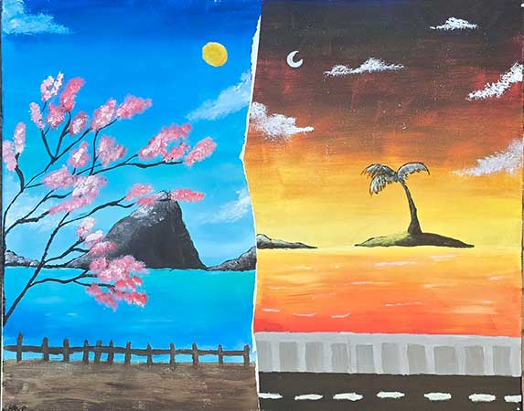 I wanted it to look like the pages of a travel magazine that had been ripped, from Japan to Hawaii.