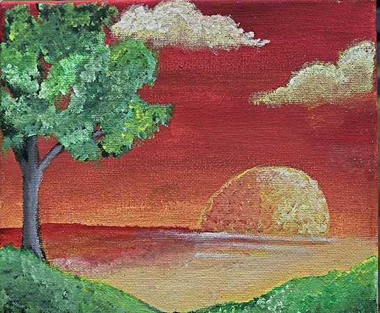 This piece was created in 2020. Throughout lockdown I needed some colour in my life that would bring me joy; and a sunset always brings me that, and makes me smile.