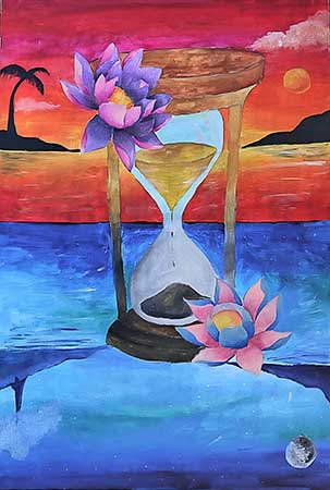This canvas was recycled and I wanted something different – I wanted to paint something to represent the sun, the moon, and the passing of time.